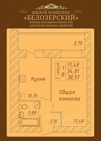 Продаётся 1-комнатная квартира в строящемся доме (Дом 6), срок сдачи: II-кв. 2026, общей площадью 36.08 кв.м., на 3 этаже. Расположение, транспортная доступность Жилой комплекс "Белозерский" находится в северо-западной части Вологды, на Белозерском шоссе, в пяти минутах езды от центра города. Близость главных транспортных развязок обеспечивает удобный проезд в любой район Вологды и к федеральным магистралям: трассе М8 "Холмогоры" Москва - Архангельск (15 минут), А114 Вологда - Новая Ладога (15 минут) и А119 Вологда - Медвежьегорск (10 минут). Непосредственно у границ комплекса расположена остановка автобусов и маршрутных такси, на которых можно за 7-10 минут добраться в центр города, за 15 минут - до железнодорожного или автовокзала. Инфраструктура Собственная инфраструктура жилого квартала "Белозерский" включает детский сад, торгово-развлекательный центр, стадион с беговыми дорожками, коммерческие помещения на первых и цокольных этажах, спортивные и детские площадки, зоны отдыха во дворах, закрытые автостоянки боксового типа и наземные парковки. Жителям также доступна действующая инфраструктура микрорайона. Рядом с комплексом находятся: общеобразовательная школа 31, детский сад 41 "Ветерок", филиал городской поликлиники, супермаркет "Пятерочка", магазин "Бристоль". В шаговой доступности расположены оптовые базы, различные магазины, кафе, ресторан "Генацвале", банный комплекс Paradise, а также берег реки Вологда и парк Мира - одно из любимых мест отдыха вологжан. Надежность застройщика Застройщик жилого квартала "Белозерский" - ООО "Профит", основанное в 2012 году в Вологде. Компания имеет опыт в строительной отрасли с 1986 года. Первый самостоятельный девелоперский проект в жилищном строительстве - 3-этажный дом на 52 квартиры на Воркутинской улице, который был успешно введен в эксплуатацию в марте 2014 года. Предприятие работает без привлечения сторонних подрядчиков, обеспечивая конкурентоспособный уровень цен на жилье. Проект комплексной застройки "Белозерский" стартовал в 2014 году: положительное заключение экспертизы выдано в апреле, соглашение о переуступке прав и обязанностей по договору аренды земельных участков подписано в октябре, разрешение на строительство первого корпуса (жилой дом 2) выдано в декабре. Секции 1 и 2 дома 2 были введены в эксплуатацию в апреле 2017 года, секции 3 и 4 - в апреле 2018 года. Покупателям квартир предложена льготная ипотека от ряда банков, генеральный партнер строительства - Сбербанк. Архитектура Жилой квартал "Белозерский" состоит из девяти кирпичных домов переменной этажности, выполненных в едином архитектурном стиле, и здания торгово-развлекательного центра. Наружные стены домов (толщиной 810 мм) и внутренние стены (380-640 мм) сделаны из силикатного кирпича, перегородки - из газобетонных блоков. В проекте представлены различные планировки, классические и европейские, от студий 29,3 кв. м до двухуровневых пятикомнатных квартир 164 кв. м. На первых этажах размещены нежилые помещения под о Продается 1-комнатная квартира в ЖК Белозерский в Вологде.