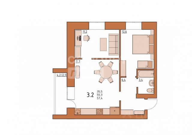 • ✅ Минимальная площадь: 44,2 м²