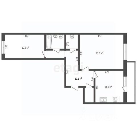 • ✅ Объект наибольшей площади: 64,1 м²