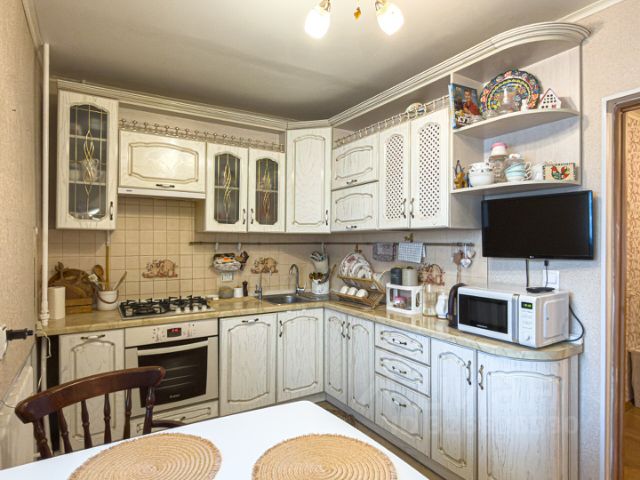 В подъезде всего 10 квартир, по 2 на площадке. Квартира находится на 4-ом этаже, в середине дома, не угловая, окна выходят на две стороны света. Общая площадь составляет 53.2 кв.м, из них 28 кв.м жилая, кухня 8.3 кв.м, объединена с комнатой 17 кв.м, с выходом на застекленный балкон с вместительными шкафами для хранения. При желании можно установить дверь и изолировать помещения. Раздельный санузел сделан в плитке, установлена качественная сантехника, счётчики воды, пластиковые трубы.
