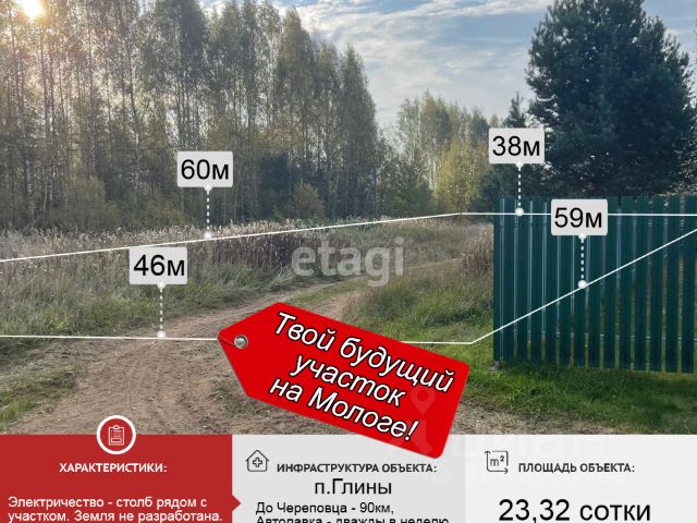 Покупай сейчас - плати потом! На данный объект доступна рассрочка на выгодных условиях Обратите внимание на участок площадью 23,32 соток в живописном месте, в 200м от р. Молога. п.Глины отличается уединением и природной красотой благодаря близости лесного массива и реки. Здесь одинаково понравится и любителям рыбалки и охотникам. СНТ "Молога" -сообщество единомышленников. На территории есть своя волейбольная площадка, общественный пляж, даже часовня! Вы приобретаете не только участок в шикарном месте, но и приятных, уважительных и ответственных соседей, а это, согласитесь, бесценно! На отворотке в д.Староречье с трассы А-114 - остановка общественного транспорта, обеспечивающая удобное сообщение с центром города. Рядом предлагаются подобные участки, торопитесь выбрать наиболее интересную для себя локацию! Электрический столб находится возле участка. Земля не разработана. Постройки отсутствуют. Категория земель: сельскохозяйственного назначения, назначение: дачное строительство. Сохраните в Избранном, чтобы не потерять! Не упустите шанс приобрести этот замечательный перспективный объект загородной недвижимости. Компания ЭТАЖИ работает с лучшими, зарекомендовавшими себя застройщиками. Бесплатно подберем один из десятков проектов домов наших партнеров! Код пользователя: 145951 Номер в базе: 2815753
