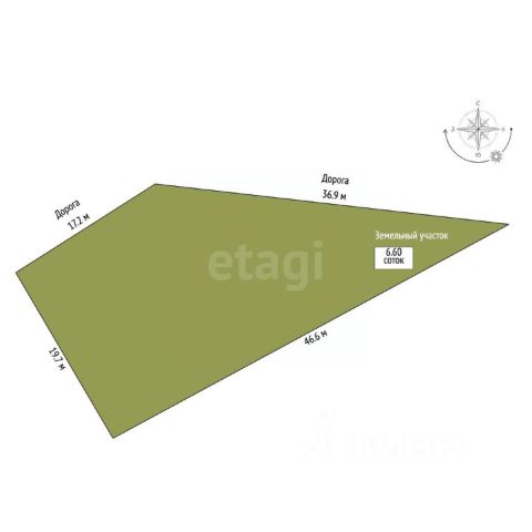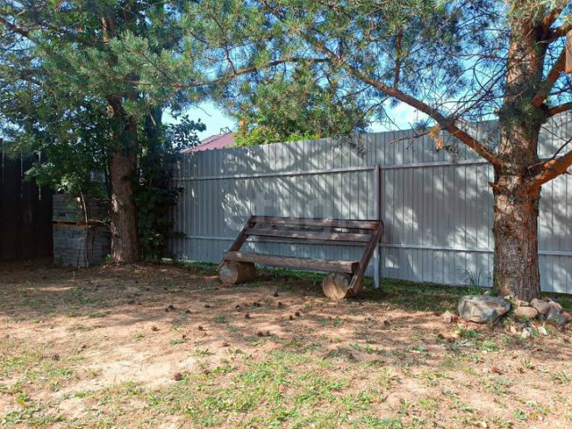 Земельный участок общей площадью 6 соток, отсыпан, выровнен, проведена процедура межевания. Благодаря правильному расположению построек, участок визуально кажется больше. Участок огорожен забором из профлиста с откатными воротами и деревом.