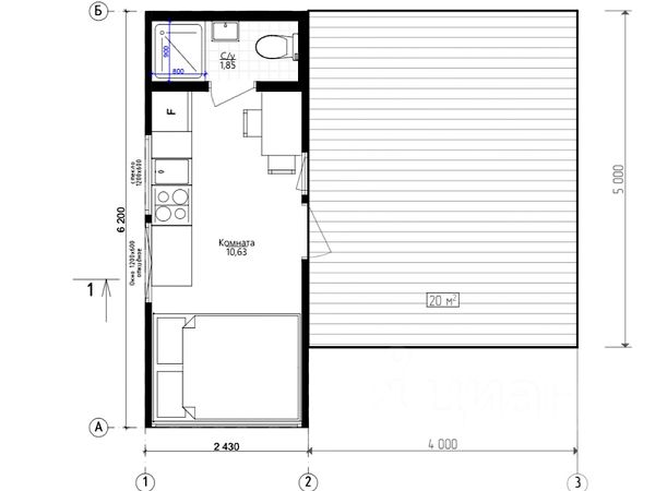 Общая площадь построек 24м² (6х2,4 и 4х2,4)