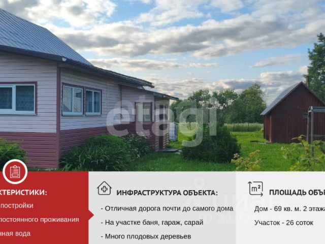 Просторный деревянный дом с участком: уютная жизнь вдали от городской суеты Предлагаем вашему вниманию отличный деревянный дом, построенный в 2003 году, который подарит своим новым владельцам тихий семейный уголок с возможностью насладиться природой и спокойствием загородной жизни. Общая площадь основного строения составляет 69 квадратных метров: здесь расположена жилая зона (25,5 кв. м) — идеально подходящая для отдыха после рабочего дня. Также полностью оборудована удобная кухня площадью 16 кв. м и комфортная тесовая веранда размером 27 кв. м, где приятно будет провести время летом за чашечкой чая или встречей гостей. Особое внимание уделено отделке помещения: стены обшиты качественной вагонка и фанерой, благодаря чему внутреннее пространство выглядит свежим и аккуратным. Внешний вид здания также радует глаз — строение покрыто прочным и практичным сайдингом, придающим дому ухоженный современный облик. Для отопления используется традиционная кирпичная печь в основной части дома и эффективная голландская печка в кухонной зоне. Это обеспечивает равномерное распределение тепла во всех помещениях даже в самые холодные зимние дни. Мансардный этаж станет приятным бонусом: основные работы по созданию комфортного пространства и утеплению уже выполнены. Вам остается определиться с отделкой стен и у вас будут еще две полноценные комнаты. Крайне важно отметить то, что дом подключен к центральному водоснабжению: у вас всегда достаточно воды, в любое время года. Благодаря этому на кухне установлены как посудомоечная так и стиральная машины. Кроме дома на участке установлена бревенчатая баня (16 кв м) в отличном состоянии. Продуманная система просушки пола надолго избавит вас от необходимости ремонта. Согласитесь, это здорово! Для хранения нужного инвентаря на участке выстроен просторный сарай, а также есть капитальный металлический гараж (18 кв м). Участок разработан, изобилует разными плодовыми деревьями (яблони, терн, облепиха) и кустами (малина, смородина). Для любителей огородных работ на участке установлена современная теплица (металлический каркас), а грядки оцинкованы - все это позволит вам получать шикарный результат! По периметру участка возведён забор: сетка-рабица. Дорога до деревни не займет у вас много времени, т к почти до самого дома свежее асфальтное покрытие, а значит вы легко сможете доехать до дома вне зависимости от погоды и времени года. Одним словом, этот участок станет идеальным выбором для тех, кто мечтает обрести собственный небольшой райский уголок среди природы, наслаждаясь покоем и гармонией сельской жизни. Подробности по теефону. Звоните, записывайтесь на просмотр. Код пользователя: 47472 Номер в базе: 8669084