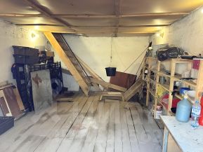Второй этаж — сделана кладовка со стеллажими с дверью под замок. Остальное пространство для размещения зоны отдыха. Отштукатурен, покрашен, потолок плита Осби окрашен.