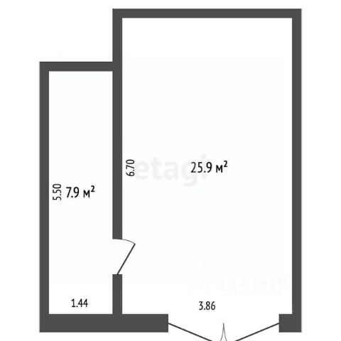 • Второе помещение: 1,44 5,50 метров