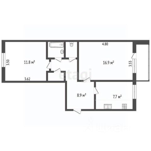 - гармоничная планировка: просторная кухня 10, 4 кв. м. и просторная квадратная комната - 16, 0 кв. м. ,