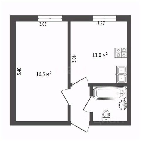 Продаётся однокомнатная квартира формата евро-2, Тип дома - кирпичный. Общая площадь 33,8 кв. м. Кухня-гостиная — 16,5 кв. м. Спальня — 11 кв. м. Санузел совмещённый. Кухонная мебель остаётся. Спальня граничит с санузлом, при желании можно подвести туда воду и сделать полноценную просторную кухню. Дом расположен в районе с развитой инфраструктурой. В шаговой доступности все необходимые объекты для комфортной жизни — сады, школы, продовольственные и непродовольственные магазины, супермаркеты, рынки, аптеки, поликлиники. Транспортное сообщение во все районы города.