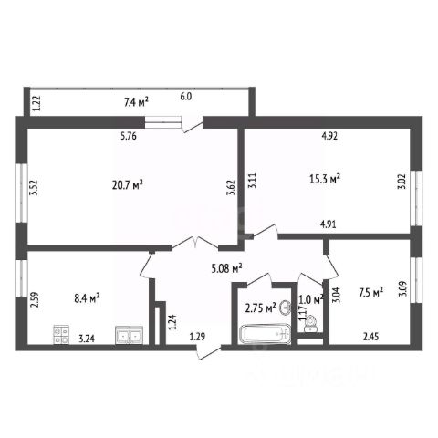 Просторная кухня позволяет комфортно готовить любимые блюда, с вызодом на лоджию. И да, в квартире две лоджии площадью 6 и 4 кв.м., из окон которых открывается великолепный вид, обеспечивая приятное завершение или начало каждого дня.