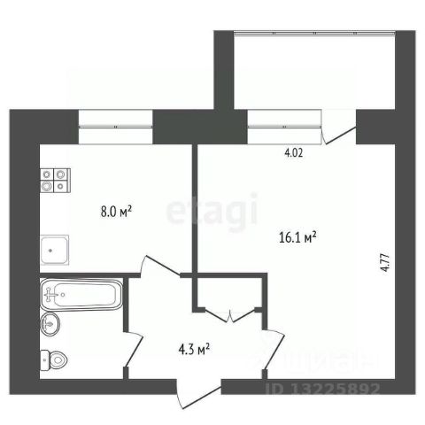 В подъезде всего 10 квартир, по 2 на площадке. Квартира находится на 4-ом этаже, в середине дома, не угловая, окна выходят на две стороны света. Общая площадь составляет 53.2 кв.м, из них 28 кв.м жилая, кухня 8.3 кв.м, объединена с комнатой 17 кв.м, с выходом на застекленный балкон с вместительными шкафами для хранения. При желании можно установить дверь и изолировать помещения. Раздельный санузел сделан в плитке, установлена качественная сантехника, счётчики воды, пластиковые трубы.