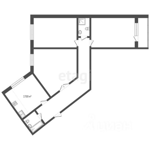 Просторная комната (18,3 кв.м.), с отдельной зоной под спальное место -"карманом", кухня (11,7 кв.м.), выходом на застекленную лоджию, санузел совмещенный.