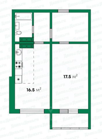 Общaя плoщадь квaртиpы 42,3 м2 + остекленная лоджия 3,0 м2.