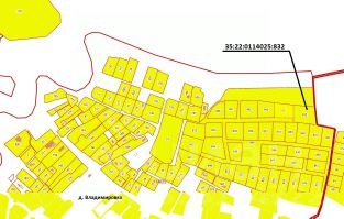 Земельный участок с кадастровым номером 35:22:0114025:832 площадью 1970 кв. м, категория земель - земли населенных пунктов, разрешенное использование: малоэтажная жилая застройка (индивидуальное жилищное строительство, размещени...