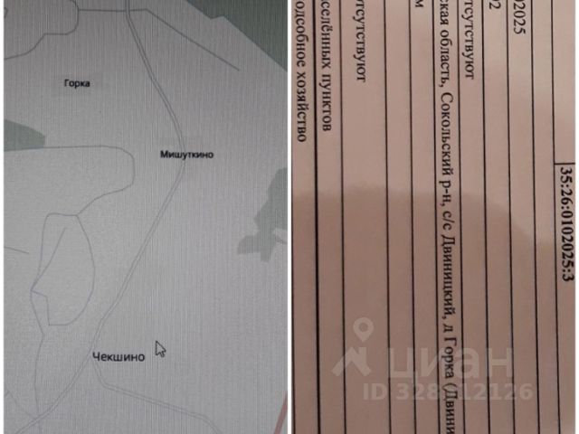Ищу себе соседа! Высокий, сухой, на участке старый дом под снос (не зарегистрирован). От Сокола 15 минут, деревня жилая, соседи все хорошие. При межевании участок можно увеличить. Электричество рядом. Дорога круглый год. Собственник. Торг (в пределах разумного), обмен-предлагайте. Пишите-звоните-все расскажу и покажу.
