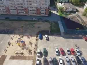 Во дворе расположена детская и спортивная площадка. Большая парковочная зона для авто. Имеется продуктовый магазин.