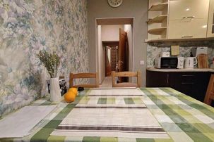 Двухкoмнатнaя кваpтира, очень просторная (67 кв.м.), на 6 человек,. Комнаты выходят на противоположные стороны дома, что создаёт поток свежего, чистого воздуха. Домашняя атмосфера, квартира была спроектирована, и отремонтирована для долгосрочного уютного проживания дружной семьей.