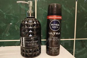 Раздельный санузел: туалет - отдельно от ванной комнаты. Пена для бритья!
