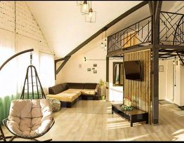 Наш апарт-отель предлагает лучшее размещение и отдых для гостей со всего мира. Преимуществом наших апартаментов является бесконтактное заселение по электронным ключам, наличие в апартаментах полноценной кухни, оснащённой всей необходимой техникой и посудой; очень просторные номера (75 м2), как правило, с двумя спальнями. Все это поможет вам почувствовать себя как дома, находясь на расстоянии. На территории апарт-отеля имеется бесплатная парковка для гостей отеля, детский городок, зона барбекю с мангалом под крышей и двумя беседками. В цокольном этаже первого корпуса работает фитнес клуб, посещение которого бесплатно для отдыхающих в отеле. В цоколе второго корпуса - расположено кафе, где вы сможете отведать вкуснейшие завтраки от нашего шеф-повара. К дополнительным услугам отеля предлагается прачечная, гладильные услуги, индивидуальная регистрация заезда/отъезда, прокат велосипедов летом и лыж зимой, услуги индивидуального тренера и доставка еды в номер. Чтобы вы могли отдохнуть после долгого дня, в номерах есть мини-бар, зона бесплатного wifi, телевизоры c поддержкой IVI и халаты. Оснащение номера зависит от выбранной категории. В каждом номере есть уникальная выставка фотографий конкретного района Вологодской области. Отель расположен на набережной реки Вологда, в 10-ти минутах от центра- отличный выбор, если вам интересны памятники, прогулки у реки и достопримечательности. Рядом: Скулябинская богадельня, Храм Богоявления, Церковь Сретения Господня. В 10 минутах ходьбы от отеля находится главная достопримечательность города - Кремлёвская площадь. В настоящее время Вологодский кремль — это лишь часть государственного архитектурного заповедника, признанного памятником культуры федерального значения. Помимо ансамбля XVIXVIII веков в него входят: Дом-музей Петра I, Музей кружева, выставочный центр "Вологда на рубеже веков", комплексы "Вологодская ссылка" и "Мир забытых вещей", Музей "Литература. Искусство. Век ХХ", Дом-музей А. Ф. Можайского, Семёнково. Наш отель подарит вам комфортный отдых и приятные воспоминания! Двухуровневые апартаменты люкс в стиле лофт. На втором этаже открытая спальня с балконом, с которого открывается вид на кухню-гостиную. Отдельная детская спальня с кроватью-лодочкой, письменным столом и односпальным раскладным диваном. В квартире имеется стиральная машина, микроволновая печь, холодильник (полноразмерный), ТВ, индукционная плита, комплект посуды на 6 человек, двухместный диван-кровать, большой обеденный стол на 6 человек. Санузел совмещенный с ванной. Постельное бельё, полотенца и одноразовые гигиенические принадлежности предоставляются по количеству гостей в брони. В апартаментах имеется платный мини бар. Окна этих апартаментов выходят на тихую улицу.