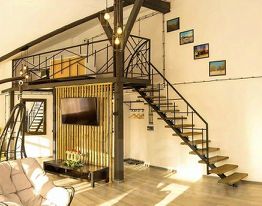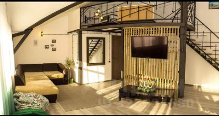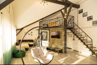 Просторные двухуровневые апартаменты - студия, расположенные на третьем этаже Апарт-отеля "Вологодские берега". Апартаменты состоят из просторной кухни-гостиной и открытой спальни на втором этаже. Кухня-гостиная оборудована всем необходимым для приятного отдыха. Имеется большой обеденный стол на 6 персон, кресло-качели (кокон), индукционная двухкомфорочная плита, микроволновая печь, холодильник, ТВ, чайник, большой диван. В спальне - двуспальная кровать (160х200) и кондиционер. Санузел совмещённый. Так же в апартаментах имеется гладильная доска и утюг. Максимальная вместимость номера 3 человека. Данные апартаменты можно арендовать для проведения мастер-классов и сборов невесты. Постельное бельё, полотенца, халаты, тапочки и предметы личной гигиены выдаются по количеству гостей в номере. В апартаментах имеется платный мини бар. Обратите внимание, что в данных апартаментах нет стиральной машины!!!