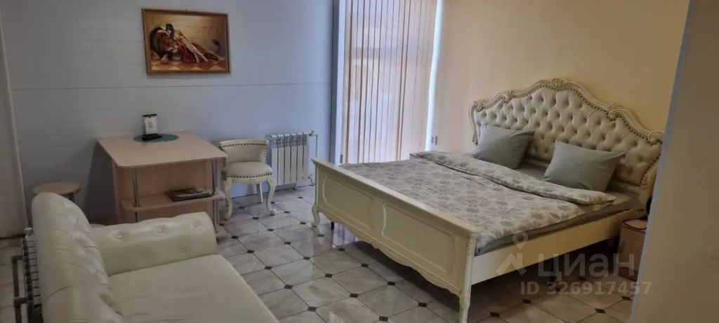 В интерьере — двуспальная кровать king size, мягкий диван и минималистичная мебель, подобранная с заботой о комфорте.