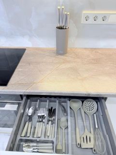 В квартире есть всё необходимое для комфортного проживания. Просторная кухня площадью 16 кв. м оснащена современной мебелью и техникой: холодильник, посудомоечная машина, индукционная варочная поверхность, электрический духовой шкаф, СВЧ, электрический чайник, мощная вытяжка, фильтр для воды с обратным осмосом. В комнате также имеется мебель, вместительные шкафы, а для вашего удобства установлен телевизор. В ванной комнате установлена душевая кабина, стирально-сушильная машина и электрический бойлер. Окна выходят на улицу, поэтому в квартире всегда светло и приятно. Квартира укомплектована всем необходимым для комфортного проживания.