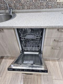 Техника: посудомоечная машина, стиральная машина, холодильник, телевизор, духовка, плита, вытяжка