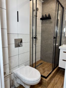 Ванная комната совмещенная, оформлена в современном стиле с душевой кабиной.Благополучные соседи, в подъезде чистота и порядок. Имеется вместительная колясочная.