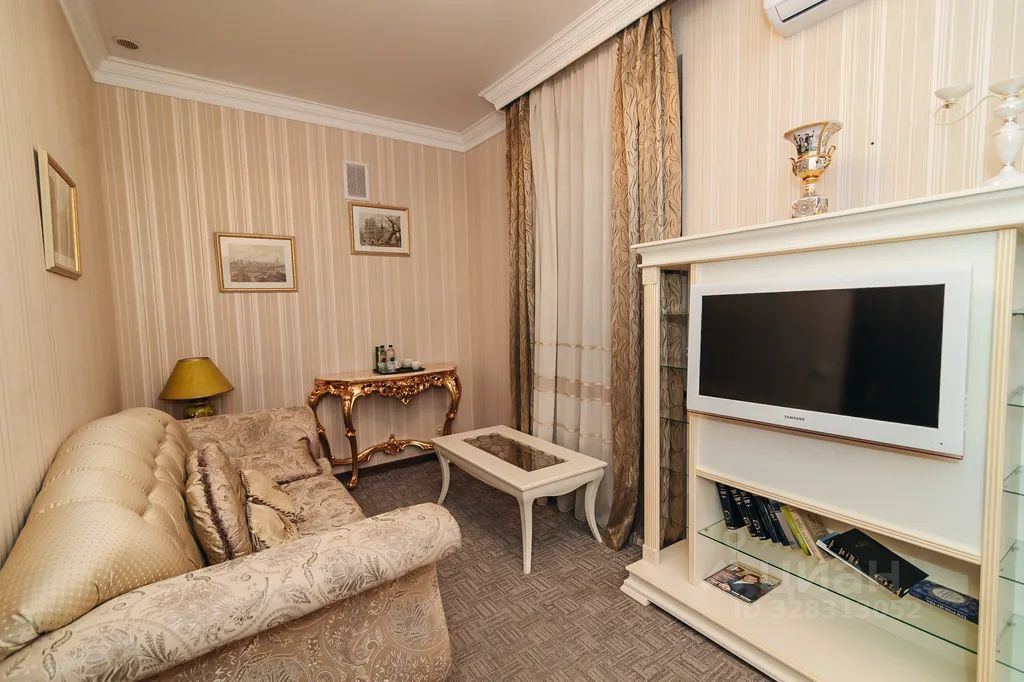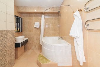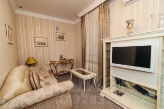 Светлый и просторный, он включает в себя спальню, ванную комнату и большую комнату, разделённую на зоны для отдыха и работы. Вся мебель подобрана в соответствии с классическим стилем номера. В номере предусмотрена ванная комната, оборудованная большой ванной, имеется фен, тапочки, косметические и туалетные принадлежности.