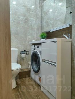 Ванная комната с новой ванной и стиральной машиной, где вы можете принять расслабляющую ванну и освежить бельё.