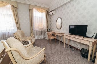 Все номера представлены в индивидуальной цветовой гамме. Современная удобная мебель в номерах создает идеальные условия для работы и отдыха. Во всех номерах предусмотрены ванные комнаты, оборудованные душевыми кабинами, имеется фен, банный халат, тапочки, косметические и туалетные принадлежности.