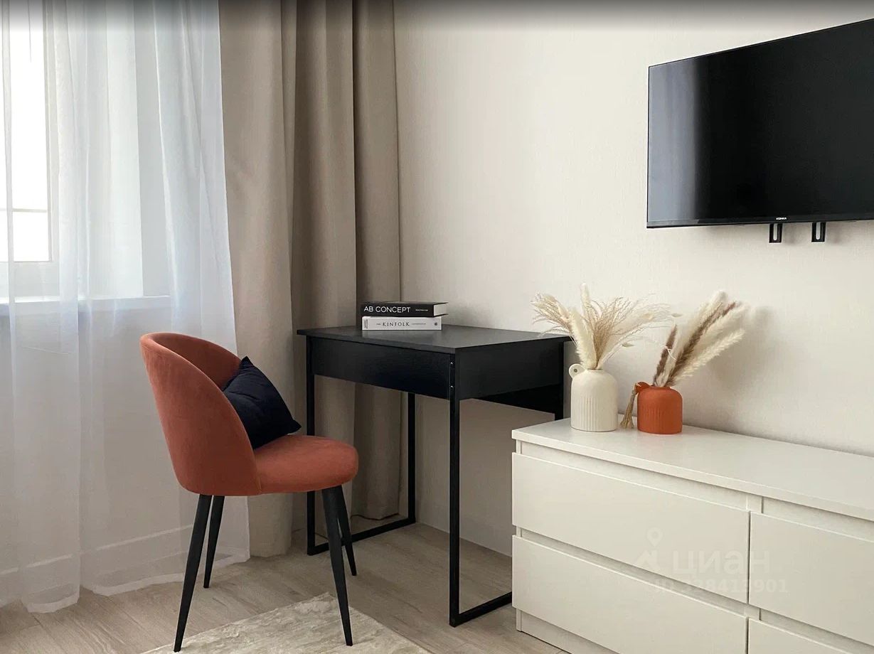 Сдаётся однокомнатная квартира площадью 34.1 кв. м в новом кирпичном доме 2023 года постройки. Квартира находится на 8 этаже из 10. Просторная кухня площадью 11.9 кв. м с выходом на лоджию, окна смотрят на улицу.