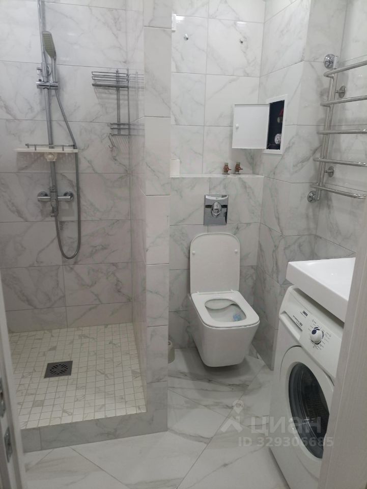 Квартира полностью меблирована и готова к проживанию. В комнате и на кухне есть вся необходимая мебель. Современная техника включена: холодильник, посудомоечная машина, телевизор и стиральная машина, что значительно облегчает быт. Санузел совмещённый, оборудован душевой кабиной.