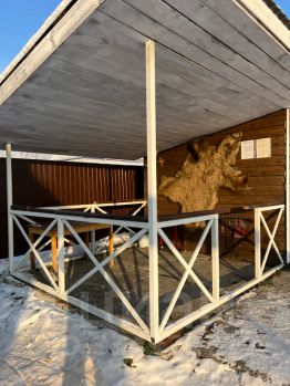Уличная мебель: терраса, стол и стулья для отдыха, мангал. Шампура и решетка предоставляются.