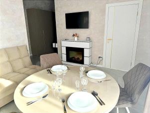 Кухня полностью оснащена необходимой современной бытовой техникой, посудой для приготовления и приема еды. Для приятного времяпровождения кухонная зона оснащена телевизором со смарт ТВ. Диван будет дополнительным удобством при отдыхе перед телевизором.