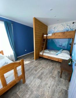 * 2 уютные спальни ( в первой спальне 1 двуспальная кровать) (во второй спальне 1 двуспальная кровать и 2 односпальные кровати). Итого шесть спальных мест. Также есть детская кроватка.