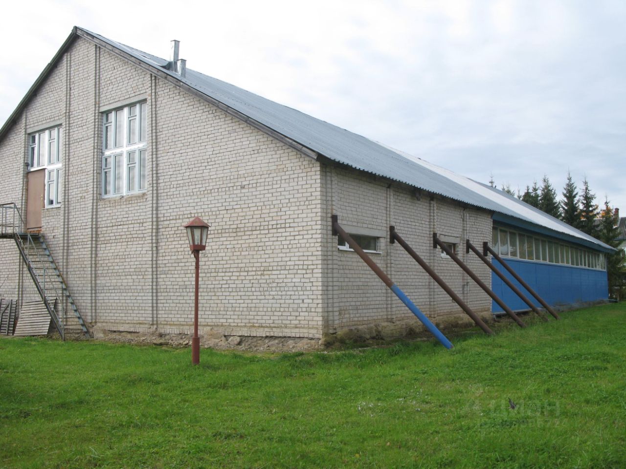 Кирпичные стены в неустойчивом состоянии, подперты балками, имеется трещина на кирпичной перегородке. Разрушена бетонная отмостка, крыльцо, частично разрушен фундамент. Во внутренних помещениях: высокий износ напольного покрытия, дверные проемы утратили эстетический вид, на путях эвакуации находятся пластиковые панели (нарушение пожарной безопасности).