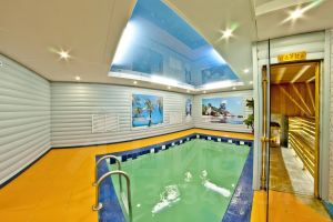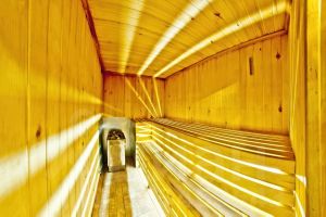 Банный комплекс состоит из русской бани на дровах с кухней, комнатой отдыха и большим бассейном (глубина 2 метра)