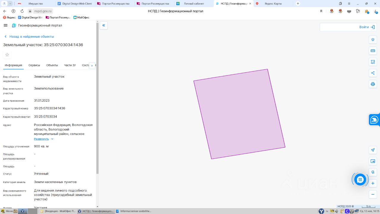 Земельный участок площадью 900 +/-10 кв.м. с кадастровым номером 35:25:0703034:1436, расположенный по адресу: Вологодский район, д. Карцево (местонахождение: Российская Федерация, Вологодская область, Вологодский муниципальный район, сельское поселение Подлесное, деревня Карцево) 1 Штука (шт)