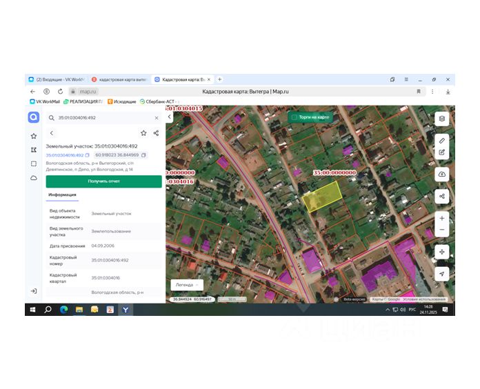 Земельный участок с кадастровым номером 35:01:0304016:492, площадью 2156 кв. м, категория земель - земли населенных пунктов, разрешенное использование: для ведения личного подсобного хозяйства (приусадебный земельный участок), местоположение: Вологодская область, р-н Вытегорский, с/п Девятинское, п Депо, ул Вологодская, д 14