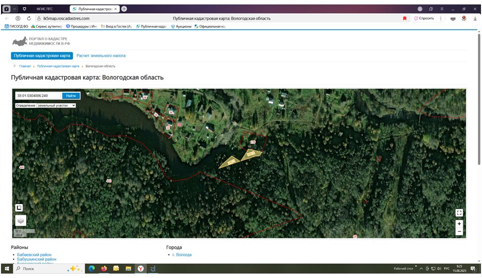 Земельный участок с кадастровым номером 35:01:0304006:240, площадью 1084 кв. м, категория земель - земли населенных пунктов, разрешенное использование: для ведения личного подсобного хозяйства (приусадебный земельный участок), местоположение: Российская Федерация, Вологодская область, Вытегорский район, сельское поселение Девятинское, деревня Марково