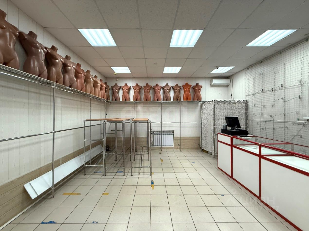Помещение площадью 39,5 кв.м расположено на первом этаже кирпичного дома по улице Революции, 7. Внутри выполнен косметический ремонт: подвесные потолки, кафельный пол, пластиковое окно и прочная входная дверь. Уже установлены кондиционер, система видеонаблюдения и электронная бегущая строка для информирования клиентов — это поможет сократить ваши стартовые расходы. В наличии отдельная примерочная и санузел.