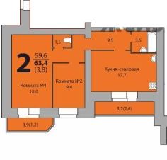 Общая площадь63,4 м²