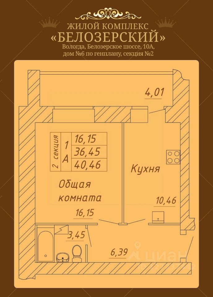Продаётся 1-комнатная квартира в строящемся доме (Дом 6), срок сдачи: II-кв. 2026, общей площадью 40.46 кв.м., на 8 этаже. Расположение, транспортная доступность