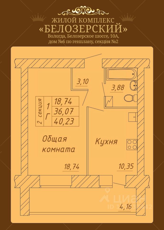 Продаётся 1-комнатная квартира в строящемся доме (Дом 6), срок сдачи: II-кв. 2026, общей площадью 40.23 кв.м., на 8 этаже. Расположение, транспортная доступность