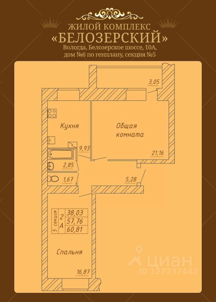 Продаётся 2-комнатная квартира в строящемся доме (Дом 6), срок сдачи: II-кв. 2026, общей площадью 60.81 кв.м., на 6 этаже. Расположение, транспортная доступность