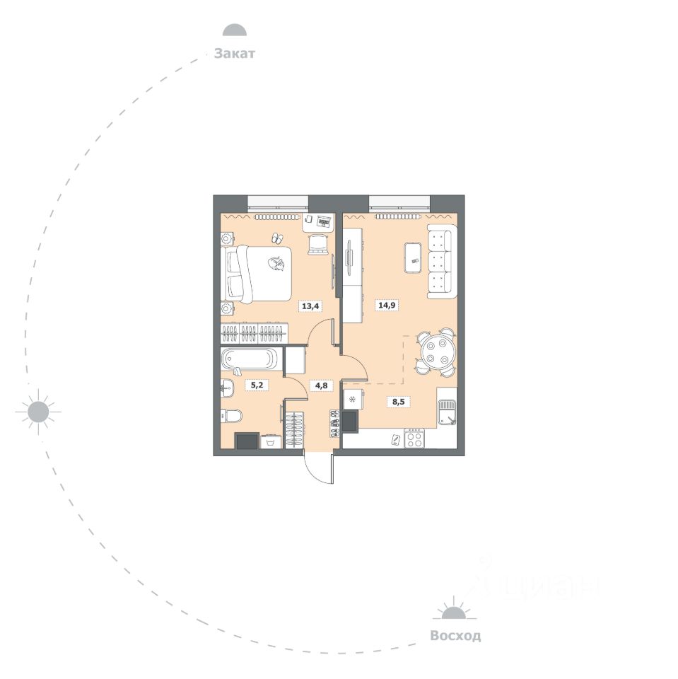 Жилая площадь13,4 м²