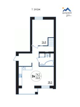 На первом этаже квартиры 74.2 кв.м., в которые входят: