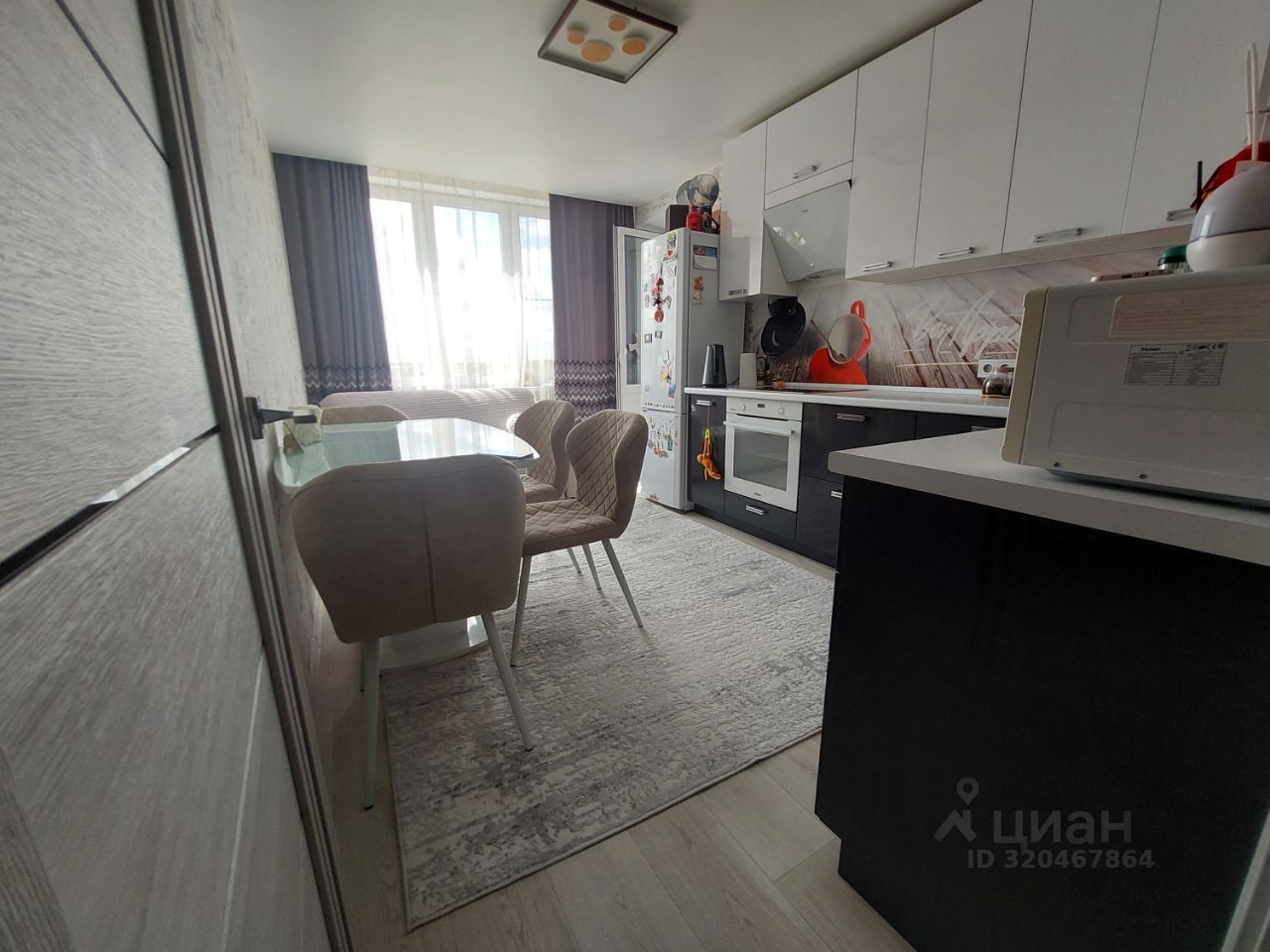 В продаже двухкомнатная квартира с просторной кухней, где оборудована кухня и гостинная