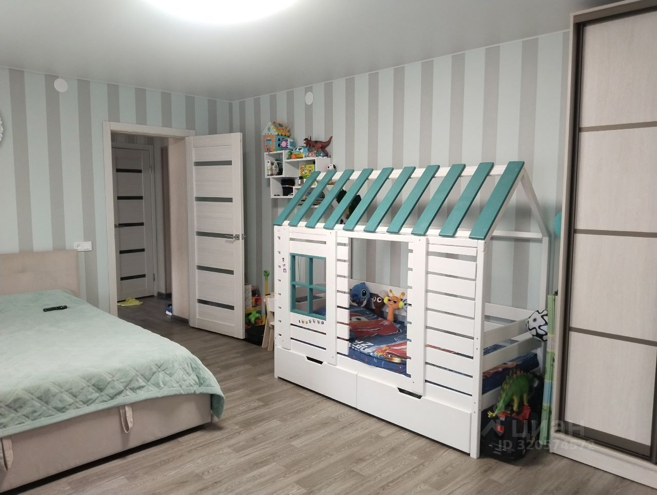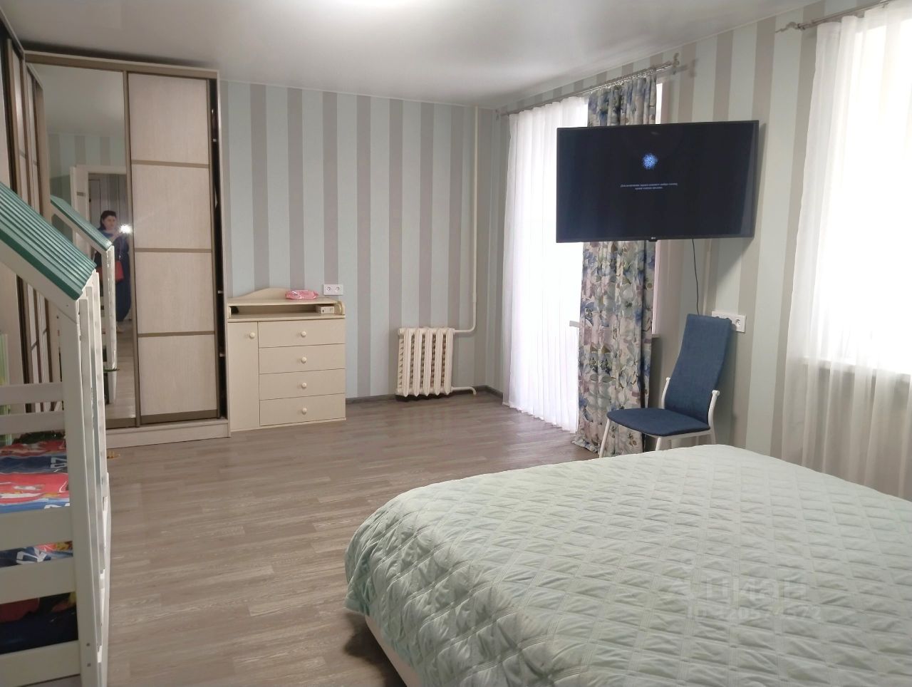 Выполнен современный качественный ремонт во всей квартире. Дополнительно есть гардеробная комната.
