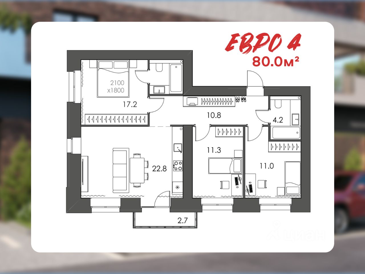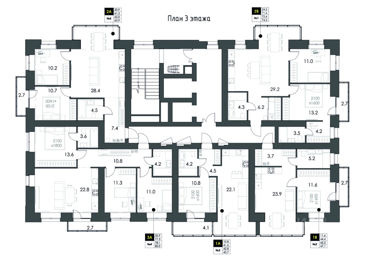 Квартира 4 расположена на 3 этаже, площадь — 80 м².